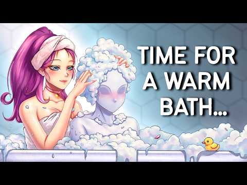 ouppy wud like bath with pretty girls, and baths are really nice, so sure *squeezes in just right to use chest as a pillow for max comf*