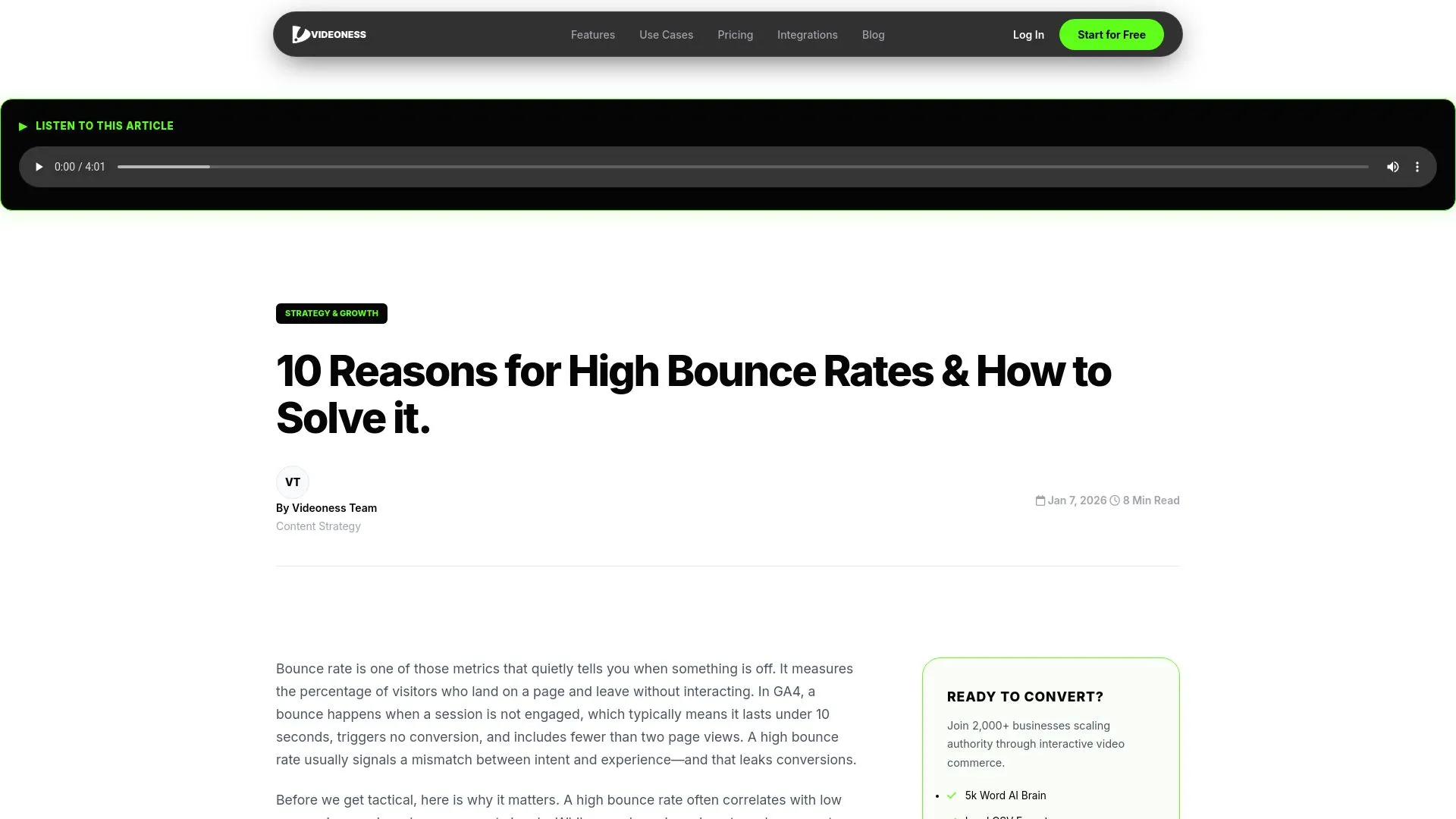 Bounce rate too high? It’s time for AI-powered video. Videoness keeps users engaged and converts curiosity into action. #Videoness #Techenya #AIConversion #VideoGrowth